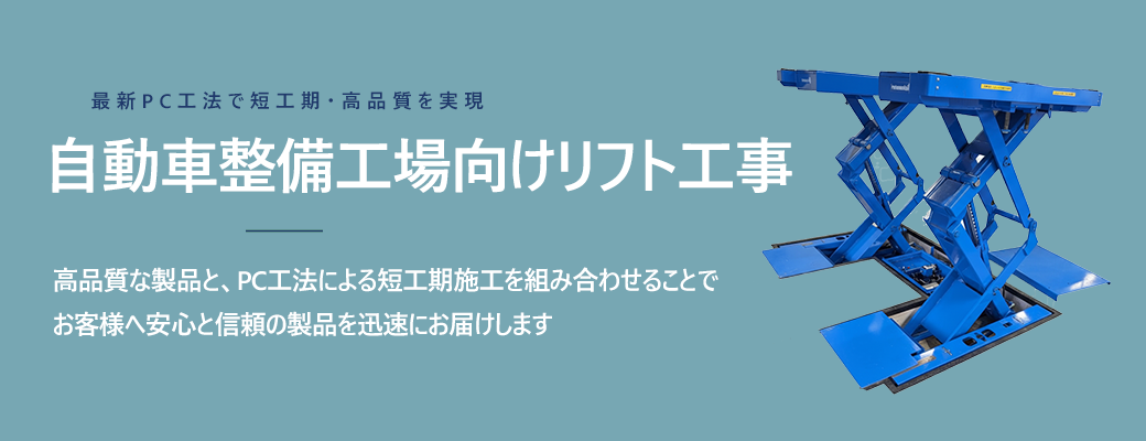 PC工法の確立により、自動車用リフト(ファンタスリフト)の設置期間を大幅に短縮することに成功いたしました。