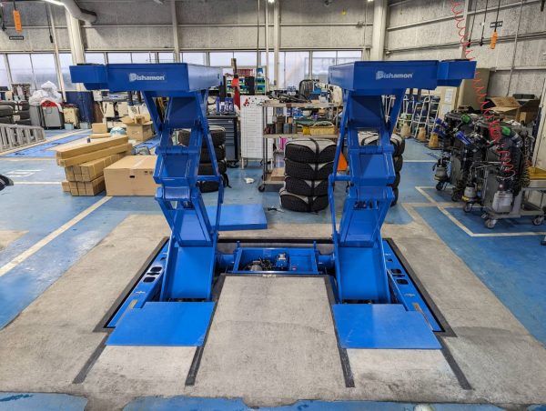弊社では自動車整備工場の車を上げ下げする機械(自動車用リフト)の入れ替え工事、新設工事をおこなっています。