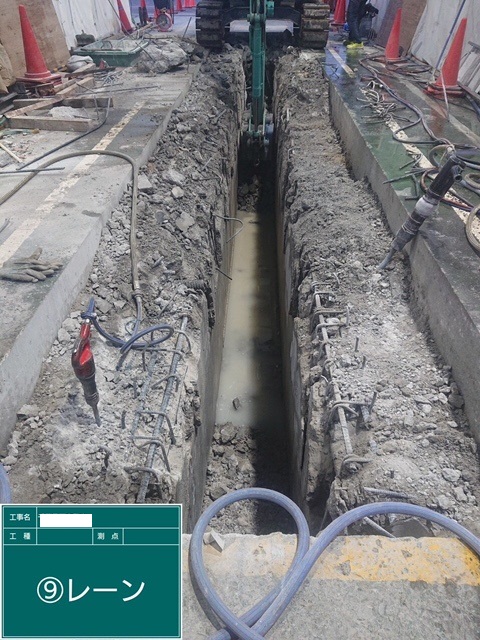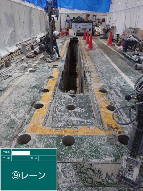 今回、施工させていただきましたのは、ピット改修工事になります! 合計3レーン分、施工させて頂きました! 施工写真 1枚目 バースター用コア抜き作業 2枚目 バースター後斫り作業 3枚目 ケミカル差し筋~配筋 4枚目 コンクリート打設作業