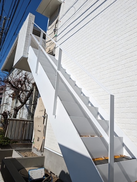 今回は川崎市中原区刈宿にてアパートの鉄骨階段を2ヶ所分、承りました!