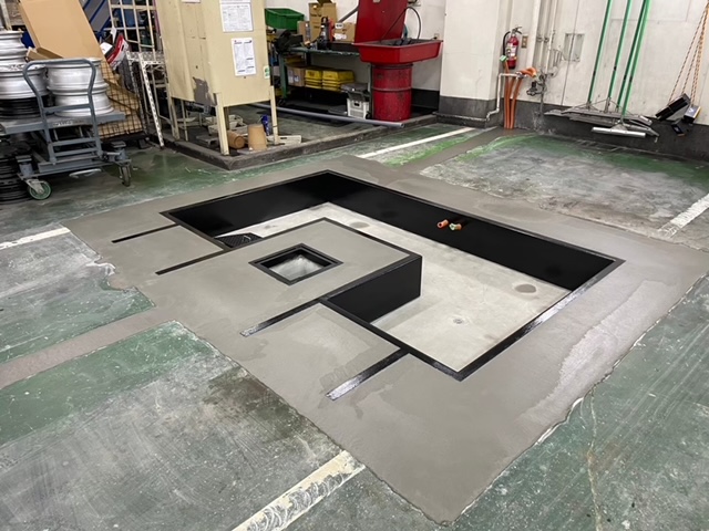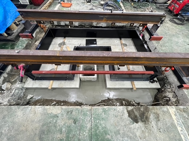 6枚目の施工写真が弊社工場での製作風景です。(底板コンクリート打設後)